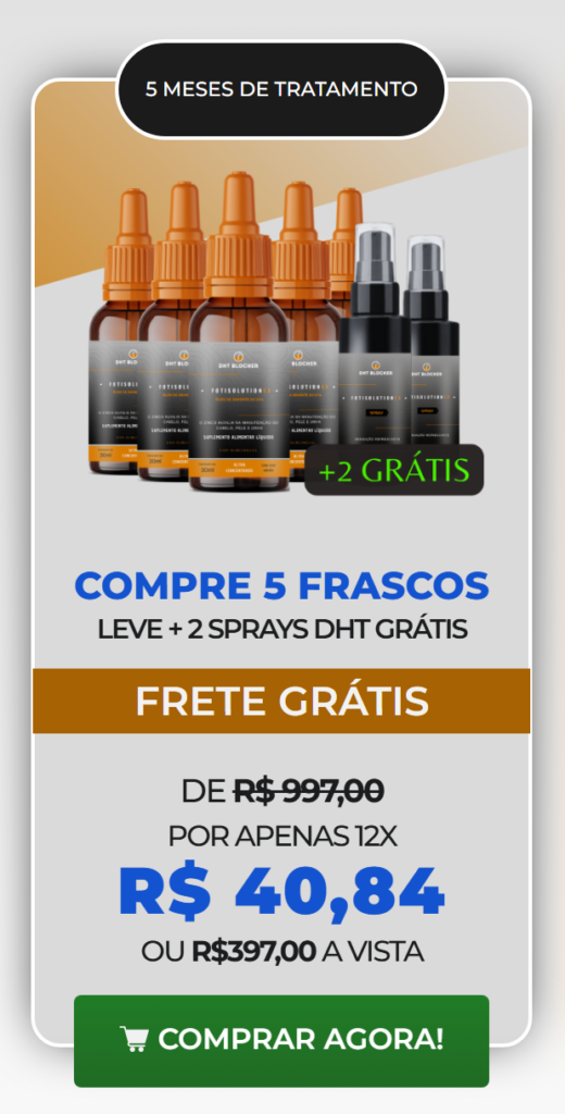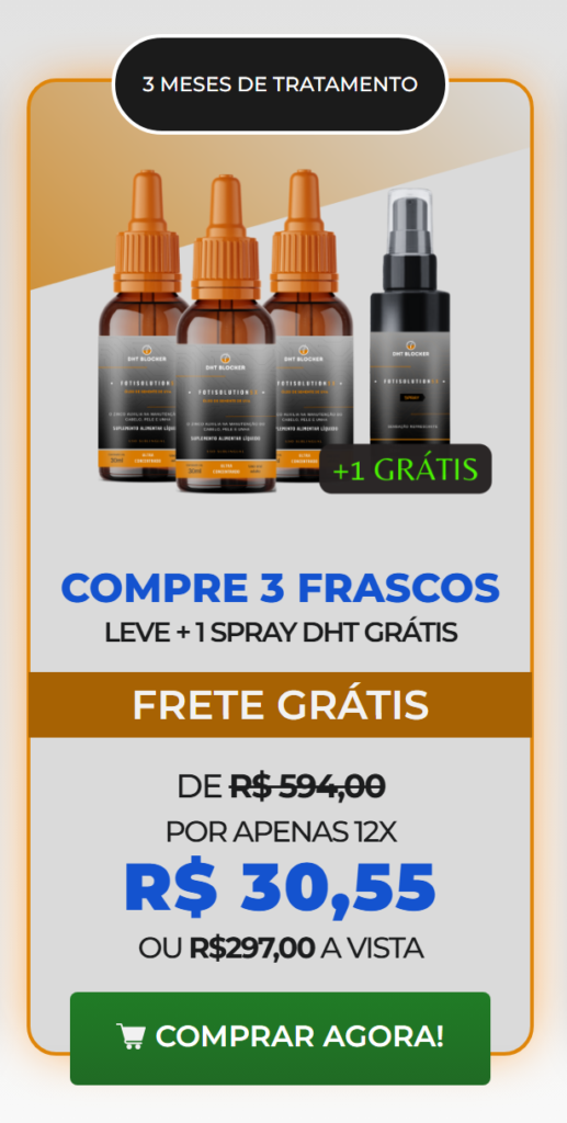 O Tratamento DHT BLOCKER é uma resposta completa e extremamente eficaz, tratando múltiplos problemas simultaneamente. Validado e comprovado pela ciência, ele promove um tratamento rápido, confiável e eficaz, resolvendo todos os problemas que causa a Calvície, tornando possível o crescimento de cabelo de forma acelerada, e sem Efeitos Colaterais. Além disso, esse tratamento foi comparado com os principais Métodos tradicionais usados por todo o mundo, inclusive comparado ao Minoxidil e Finasterida, e teve uma ação de eficácia até 5x mais acelerada e duradoura que todos eles. Dê uma chance ao DHT BLOCKER e restaure sua saúde capilar.